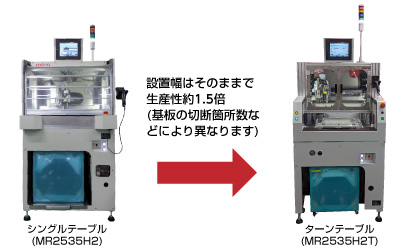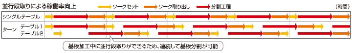 基板加工中に並行段取りができ、高速加工可能なハイコストパフォーマンスの高機能モデルです。